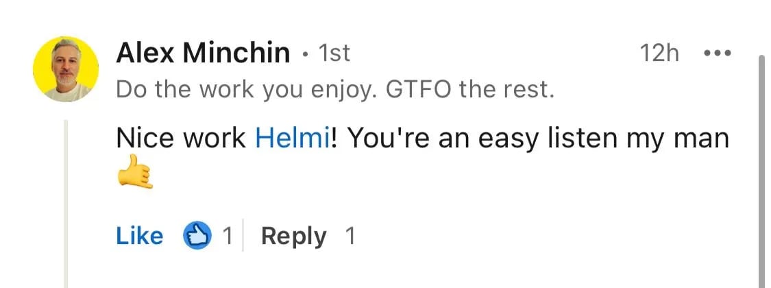 "Helmi helped me with mindset - I have severely cut down my topic generation time, which gives me time back to work on my business and service my clients."