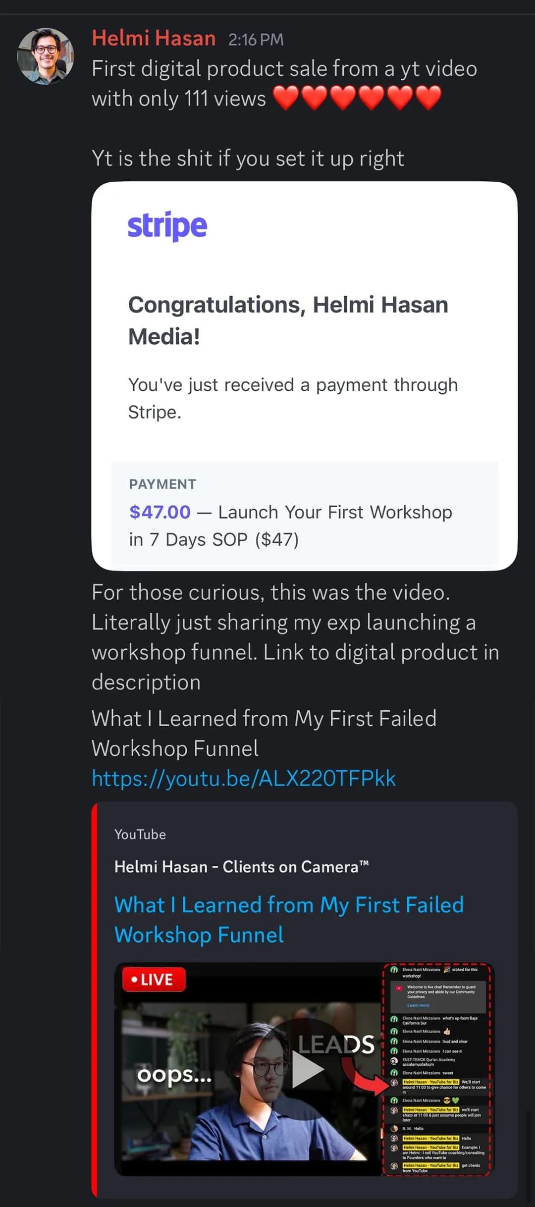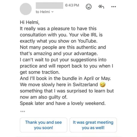 "Helmi showed me how to approach YouTube as a business tool, not just a platform."