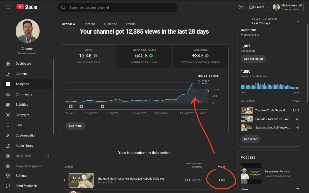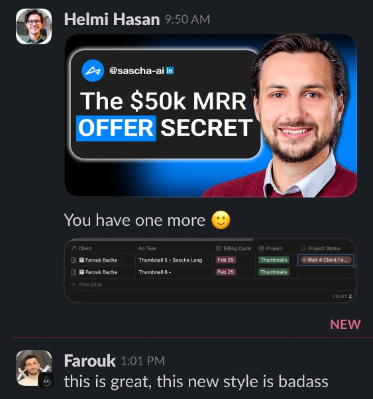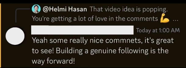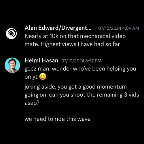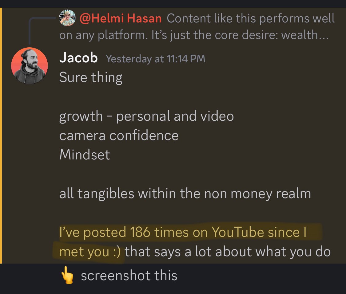 Private DM feedback on your ideas, thumbnail, titles, scripts & editing.